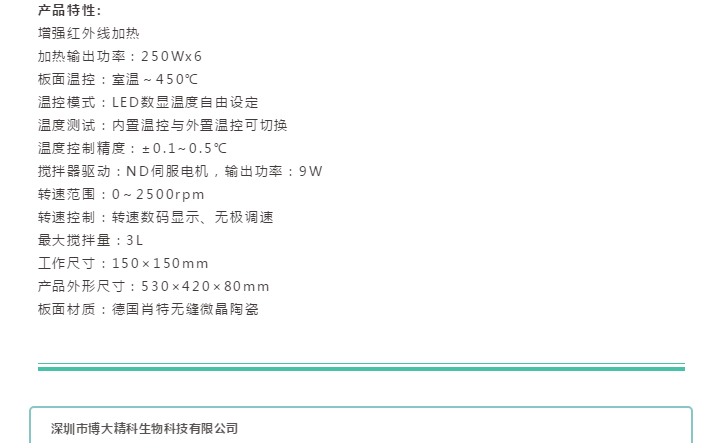 深圳市博大精科生物科技有限公司是一家高新科技公司,致力于先進材料的研發和應用,公司自有產品知識產權,開發項目包括納米發熱新材料,廣泛應用于工業,醫療,科研,實驗室等領域;